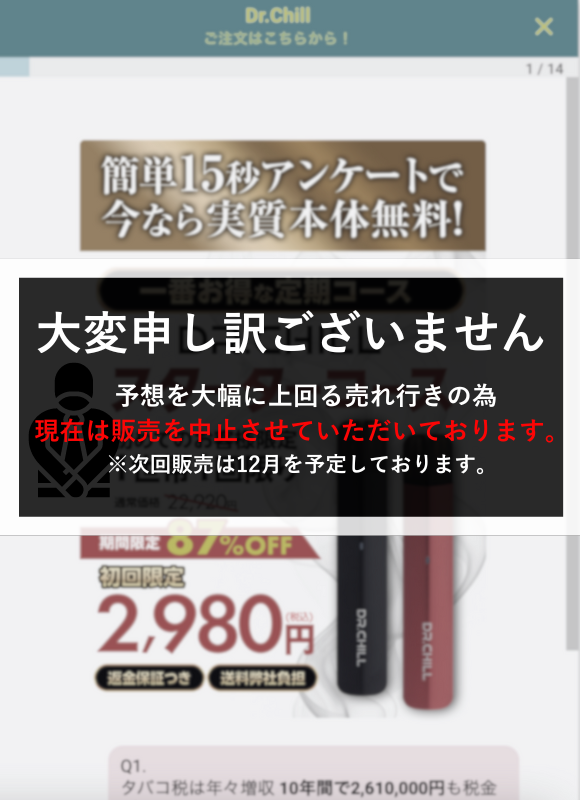 - 「東京都」のS・M様より Dr.Chill コーラ味 のご注文を承りました。ご注文番号:********